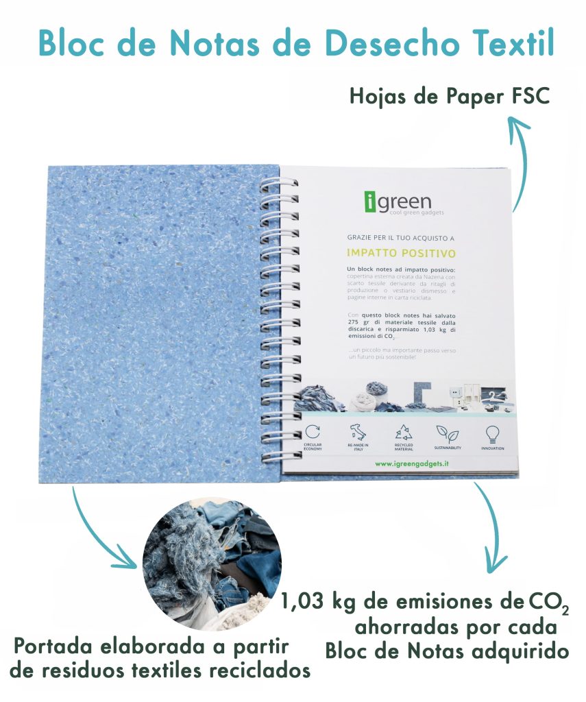 Cada Bloc de Notas de Desecho Textil puede solicitarse en versión estándar o personalizado con logotipo y gráficos corporativos. Es la solución ideal para eventos, ferias, obsequios empresariales y actividades de branding sostenible. Con tiradas mínimas dedicadas al B2B, es posible crear un gadget exclusivo, capaz de transmitir de manera inmediata el compromiso con el medio ambiente y los valores de la marca.