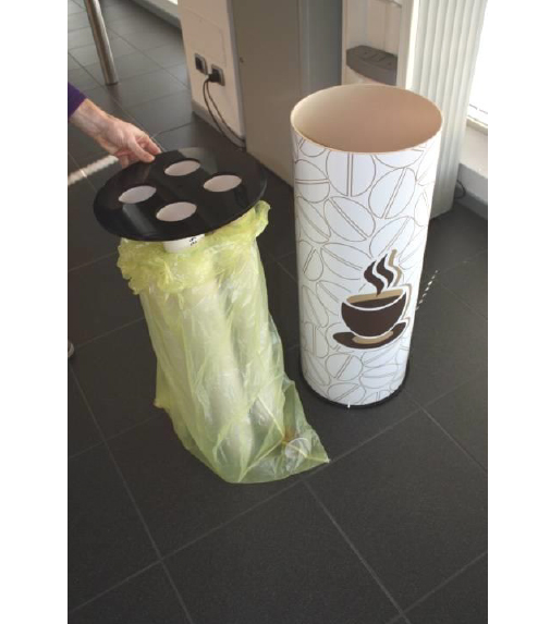 R-Cups racionaliza el espacio destinado a los vasos de café usados. Además, te permite ahorrar en bolsas y en el vaciado de los residuos.